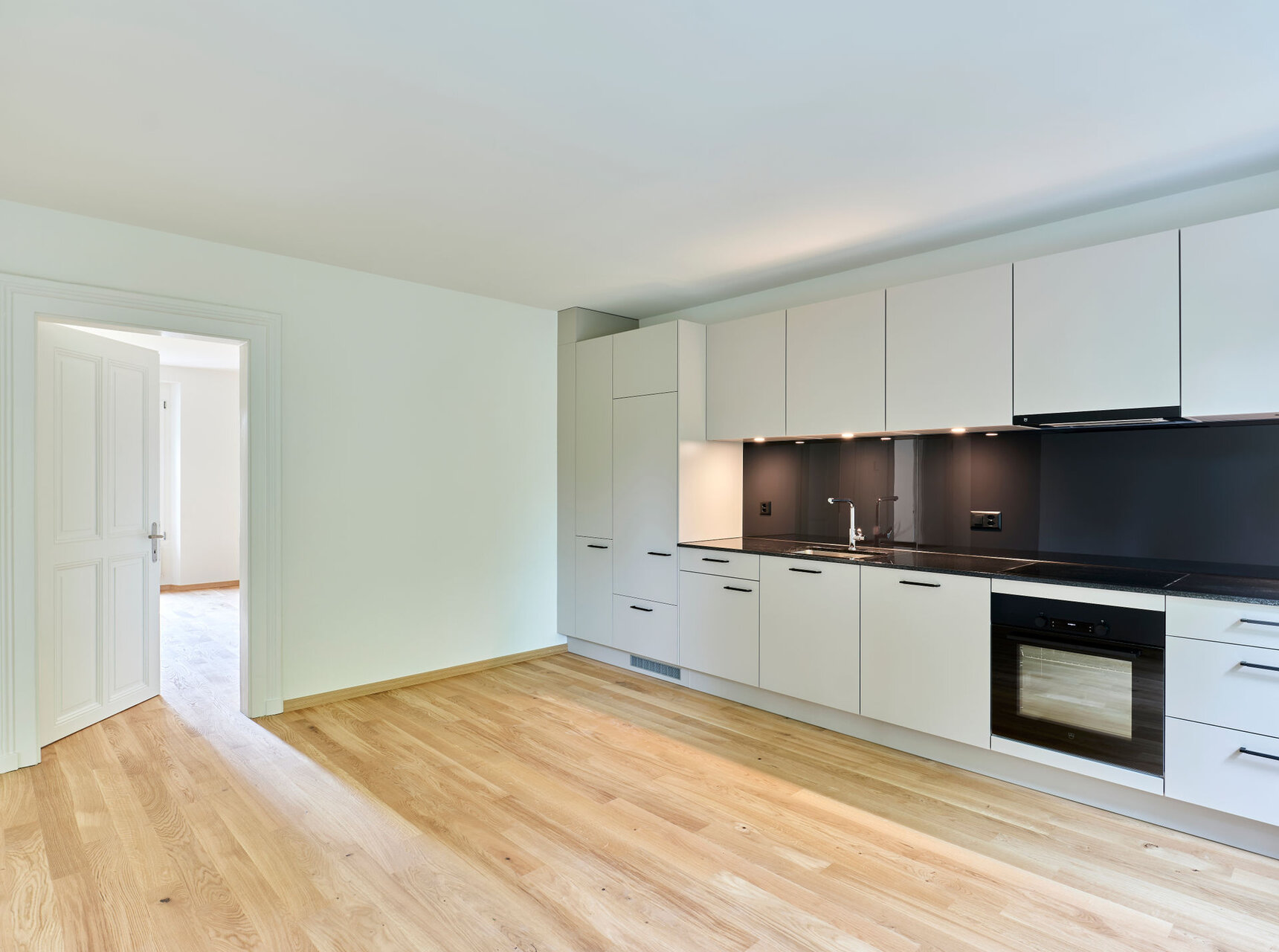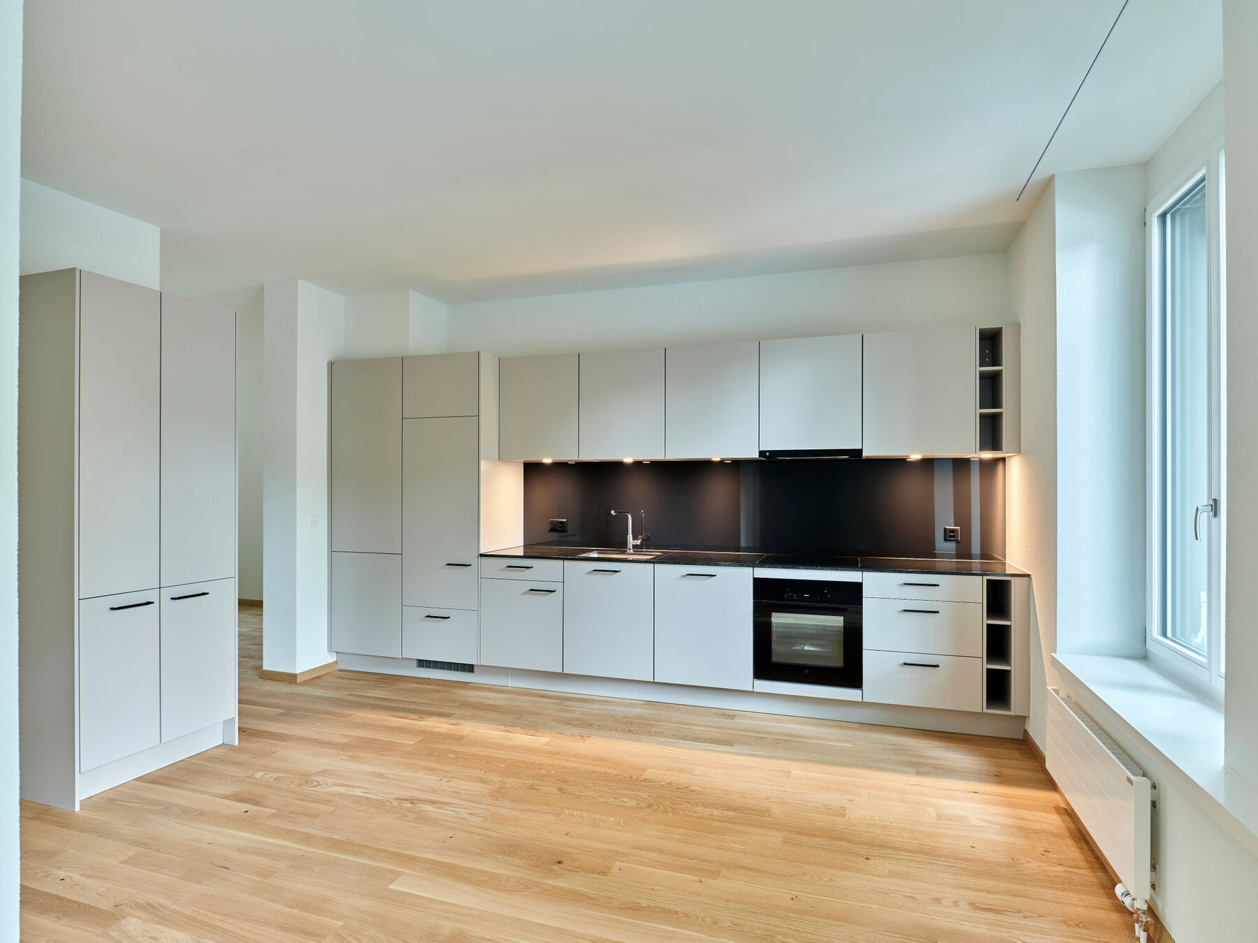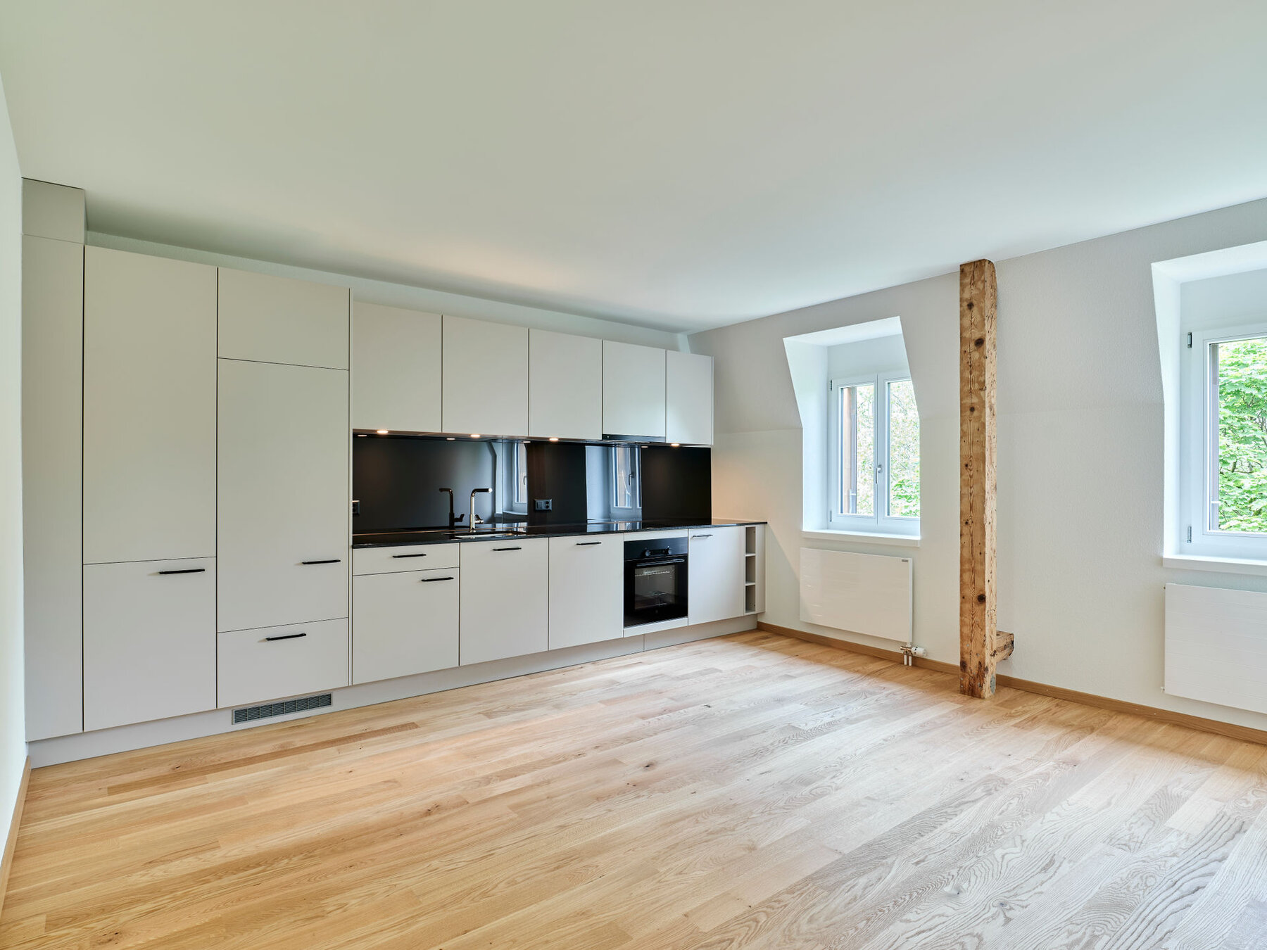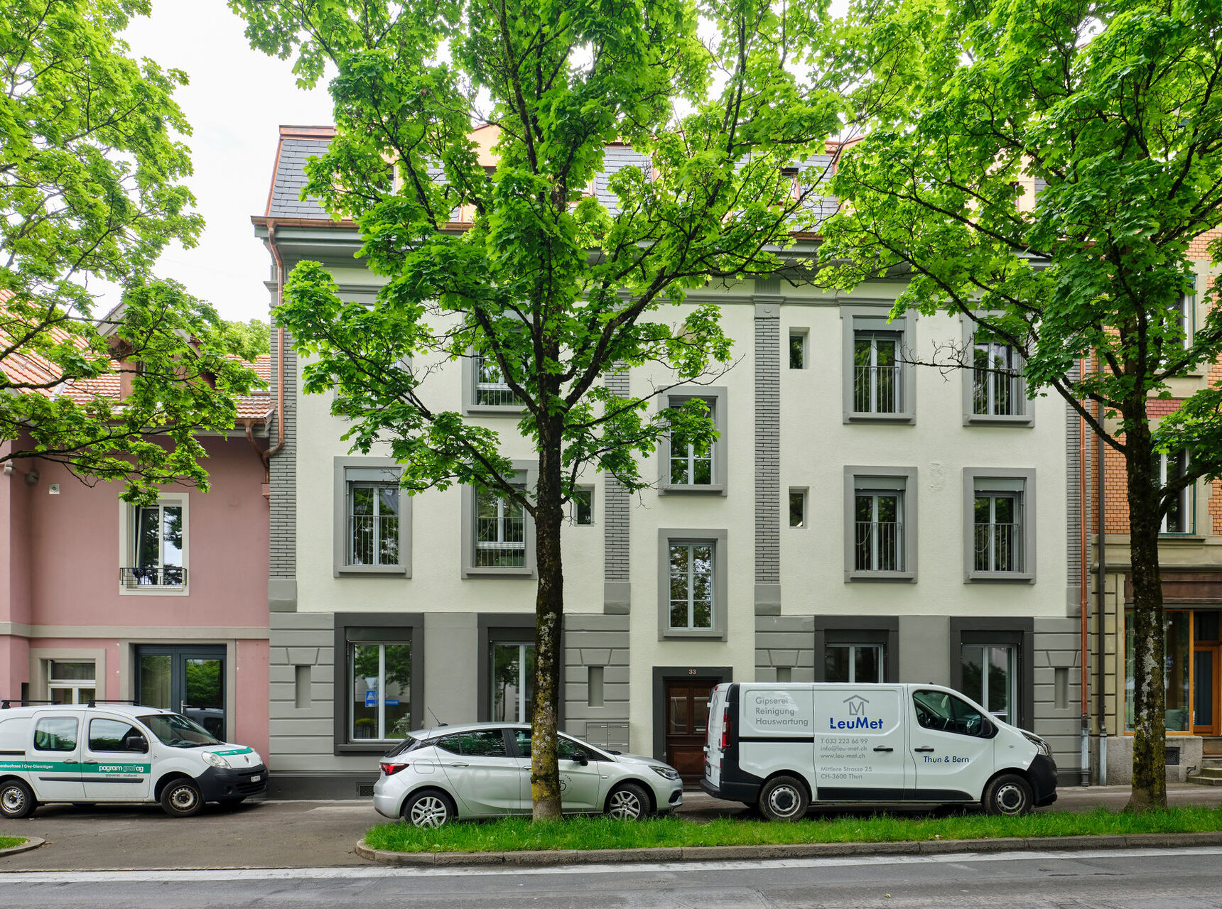 Heute verfügt das Gebäude über fünf 2.5-Zimmerwohnungen und drei 3-Zimmerwohnungen. Bei der Innensanierung wurden die Küchen und Bäder vollständig ersetzt und die demodierten Grundrisse neu gestaltet. Die 4 Wohnungen im 1. + 2. OG erfreuen sich zudem nun über einen sonnigen Balkon an der Südfassade, welcher sich in einen grünen Innenhof richtet. Mit dem neuen, zeitgemässen Auftritt ist das Gebäude für die Zukunft bestens gerüstet. Die Erstvermietung wurde per Sommer 2024 vollzogen.